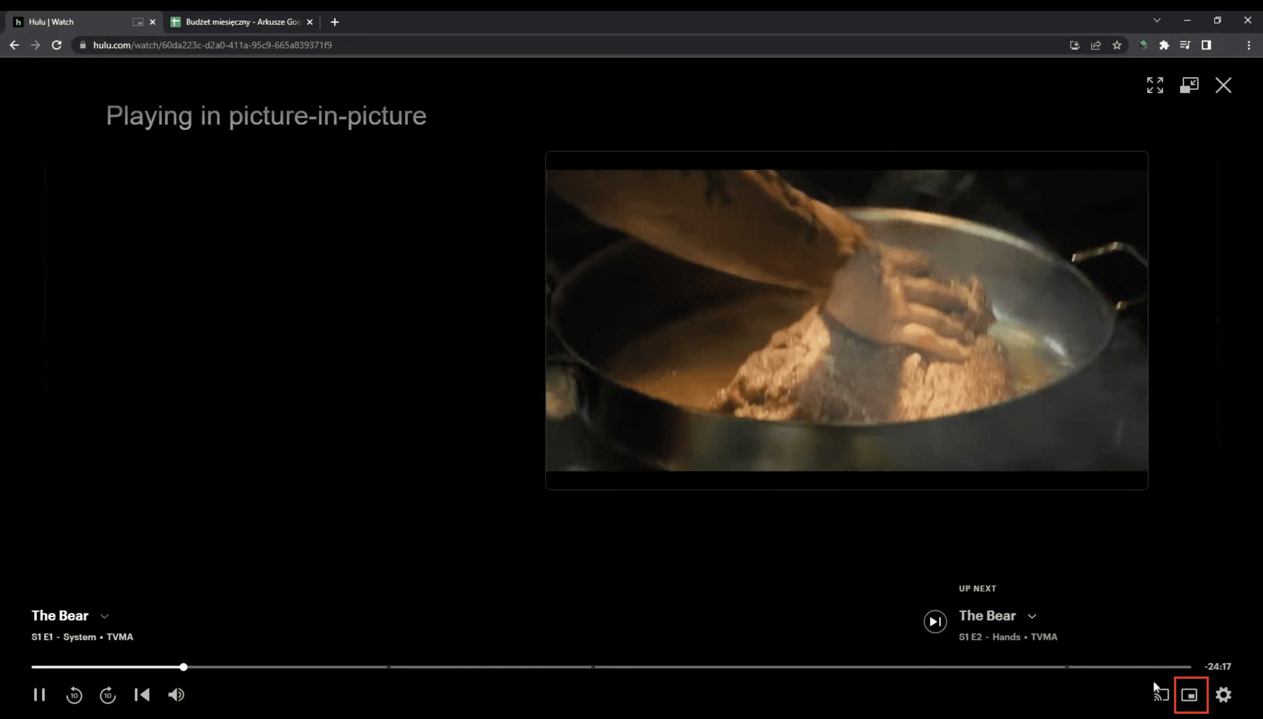 Option 1: Hulu built-in PiP icon