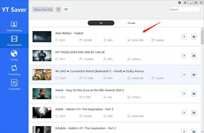 Step 4: After downloading finishes, the downloaded file will be saved to your computer automatically. You can check the files in the Downloaded section of the software.